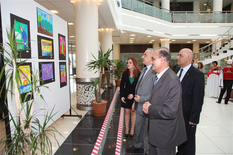 Heyet daha sonra SATSO2da 23 Nisan Ulusal Egemenlik ve Çocuk Bayramı vesilesi ile SAGÜSAd Çocukları tarafından hazırlanan resimlerden oluşan serginin açılış törenine katıldılar.