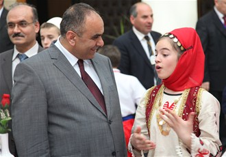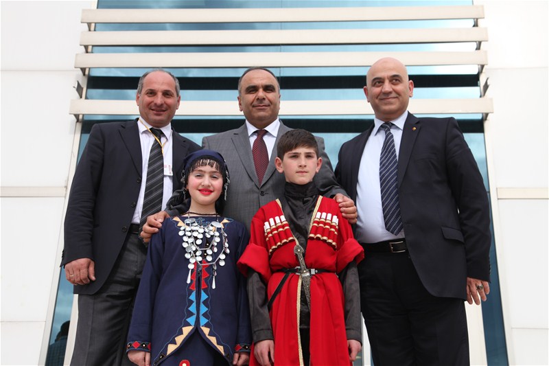 Karşılıklı iyi niyet dilek ve temennilerinin ardından heyetteki delegasyon temsilcileri ve çocuklar SATSO Yönetim Kurulu Başkanı Mahmut Kösemusul'a ayrı ayrı ülkelerini tanıtıcı yöresel hediyeler ve yayınlar hediye ettiler.