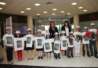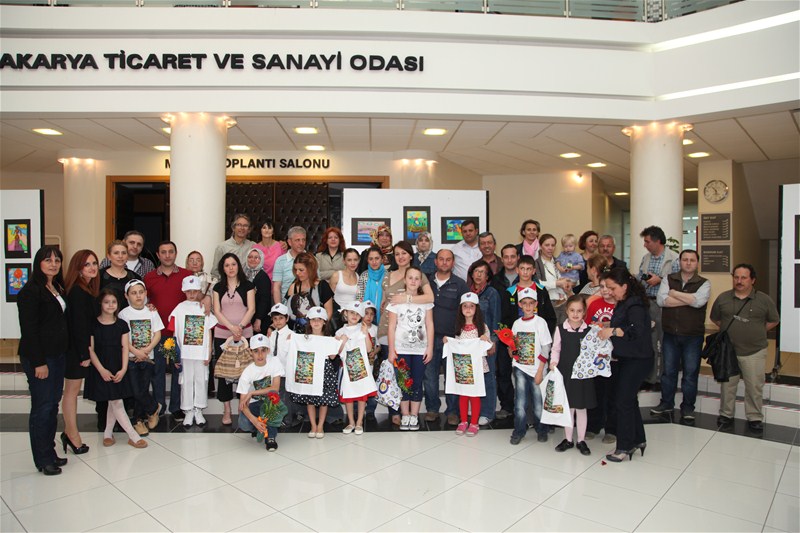 Açılış töreninin ardından heyet ve sanatseverler çocuklarla birlikte sergiyi gezdiler.