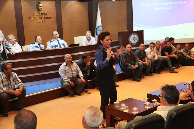 Seminerin ilk bölümünde Sakarya Üniversitesi Kırkpınar Meslek Yüksek Okulu Öğretim Üyesi Zuhal Erol, servis şoförlerine öfke kontrolü ile ilgili bilgi vererek trafikte mutlaka yapılması gerekenler ve asla yapılmaması gerekenleri de örneklerle açıkladı. Erol öfkenin nedenlerine değinerek "Güçlü insan öfkelendiğinde kavga eden insan değildir. Öfke durumunda vücudumuz tepki vermeye başlar, vücut ve zihin savaş ya da kaç tepkilerine hazırdır. Buna kişinin kendisinin karar vermesi gerekir. Hayata öfkeli davrananların alkolü ve sigarayı daha fazla tükettiği aceleci olduğu aşırı yemek yemek alışkanlığı olduğu gibi benzer sonuçlarının yapılan araştırmalarla belirlendiği ortaya çıktı" dedi. Erol konuşmasında çatışma ve anlaşmazlıkları olumlu bir şekilde çözümlemek gerektiğini dile getirerek "Öfkeniz karşınızdakine şiddete dönüştüğü zaman çok zararlı bir hale gelir. Hangi duygunuz öfkeye neden oluyorsa önce onu belirlemek ve pasif ya da saldırgan olmadan öfkeyi kontrol etmek gerekir" dedi.