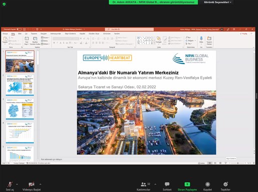 Sakarya Ticaret ve Sanayi Odası Yurtdışı İş Geliştirme Komisyonu girişimleriyle “Almanya- Kuzey Ren Vestfalya Eyaleti Tanıtım toplantısı gerçekleştirildi.
