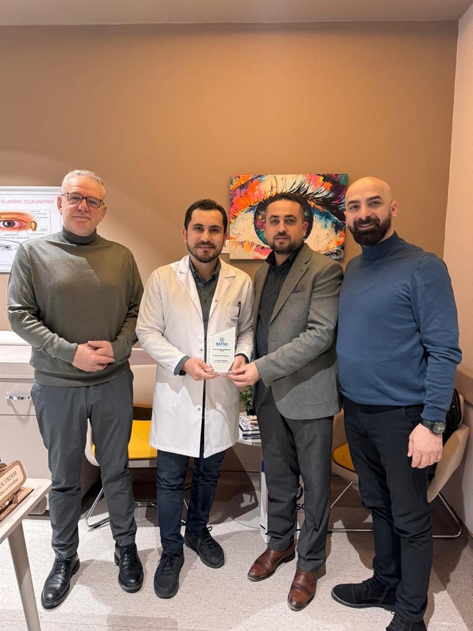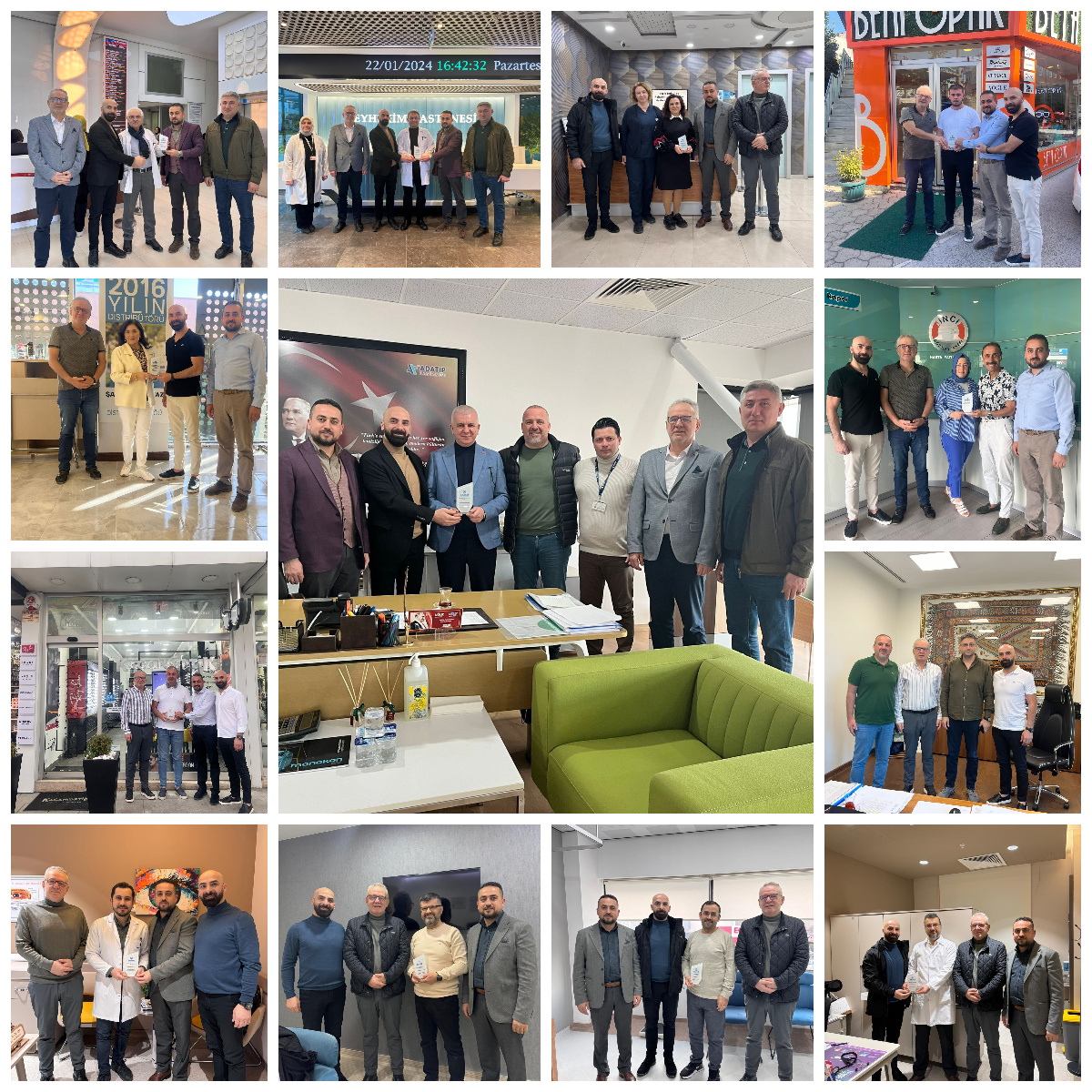 Ziyaretler kapsamında AGDAŞ Genel Müdürü Mesut Uzun, Özel Beyhekim Hastanesi Başhekimi Dr. Mehmet Kırdar, Özel Bilge Hastanesi Başhekimi Dr. İsmet Kartal, Özel Adatıp Hastanesi Genel Müdür Yardımcısı Önder Altun, Fizyo Sağlık Hizmetleri, Kağan Optik Firma Sahibi Levent Şirin, Beta Optik, Meslek Grubu Üyesi Şaduman Yılmazer, Prof.Dr. Hakan Özhan, Op.Dr. Murat Tiftikçi, Doç.Dr. Erkan Arpacı, Op.Dr. Ufuk Ürdem ile Özel İnci Göz Hastanesi Koordinatörü Suat Yılmazer ziyaret edildi. Komite Üyeleri ziyaret ettikleri üyelerini sektördeki hizmetleri ve sağladıkları değer için onurlandırmak amacıyla plaket takdiminde bulundu.