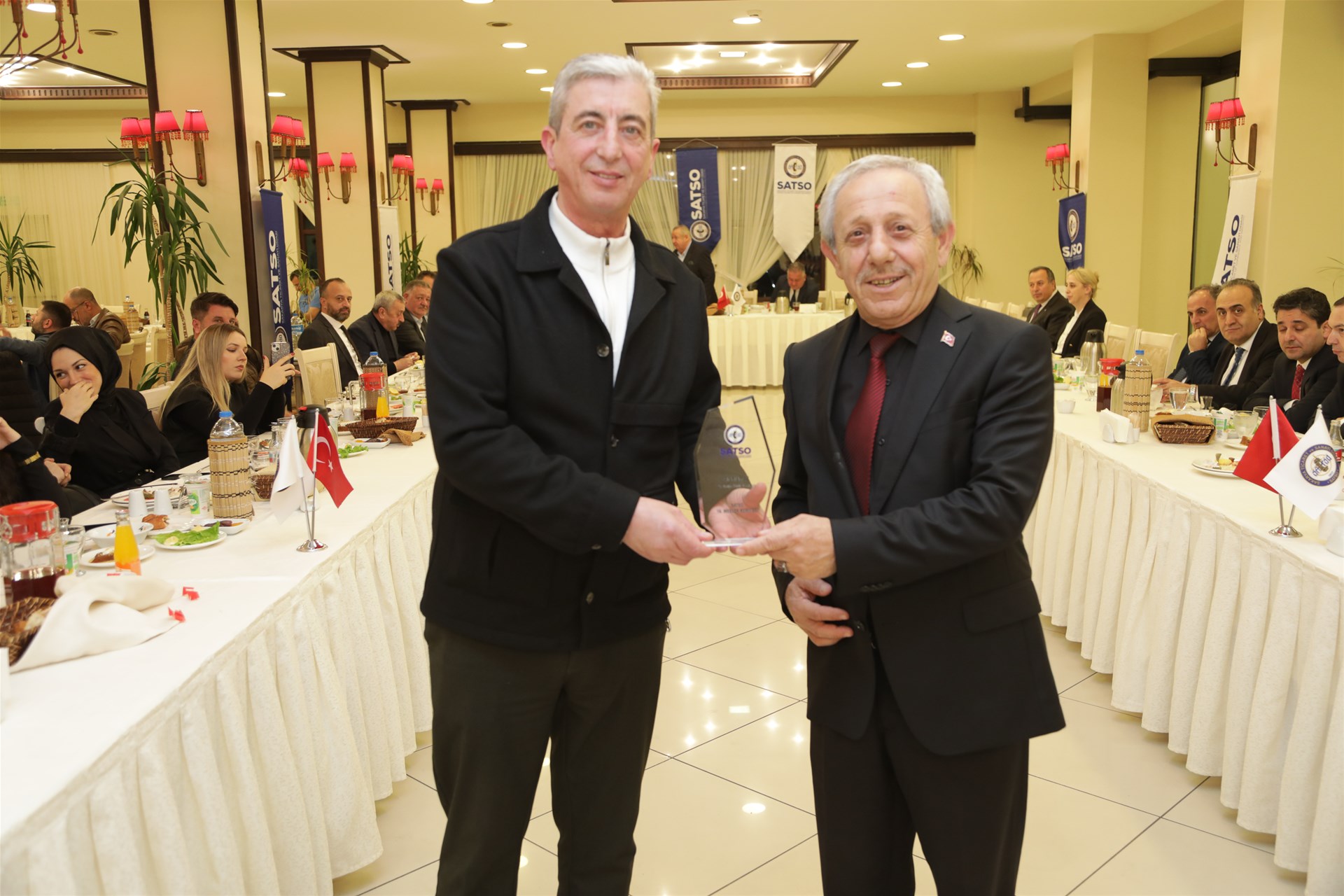 İftar etkinliğinin sonunda SESOB Başkanı Hasan Alişan ve Komite Üyesi Şerafettin Gülerce tarafından Halkbank Bölge Koordinatörü Dursun Ali Kılıçlı ile SESKOP Başkanı Ali Yılmaz’a plaket takdiminde bulunuldu.
