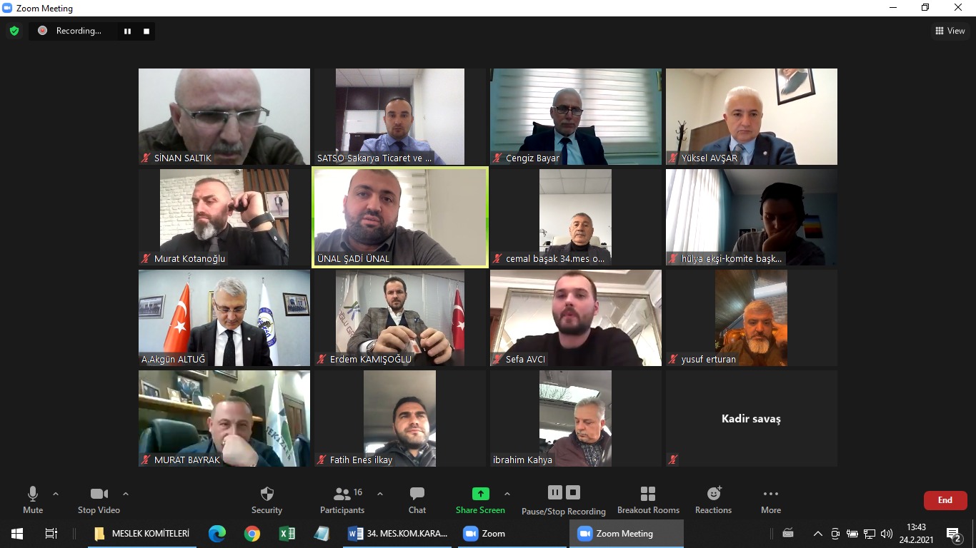 Sakarya Ticaret ve Sanayi Odası bünyesinde çalışmalarını yürüten, Müteahhitlik Faaliyetleri sektörü temsilcilerinin oluşturduğu 34. Meslek Komitesi aylık olağan toplantısını meslek grubu üyelerinin de katılımıyla webinar platformu üzerinden gerçekleştirdi.